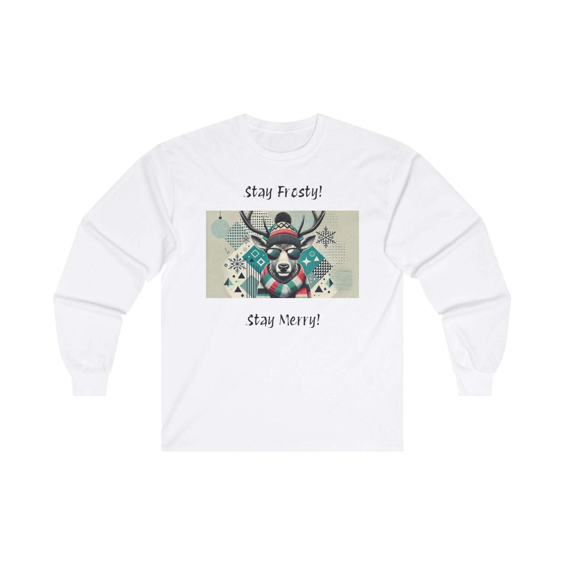 Teen Girls' Long Sleeve Tee - Cool Reindeer with Sunglasses 'Stay Frosty Stay Merry'