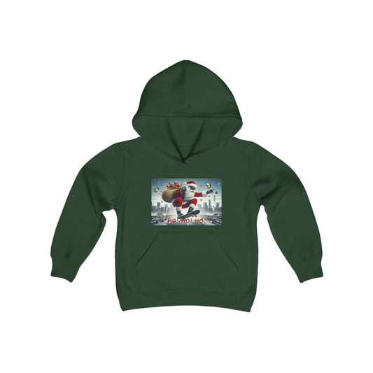 Boys' Hooded Sweatshirt - Ho! Ho! Ho! | Santa on Skateboard Design 01