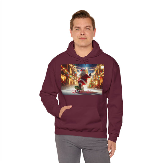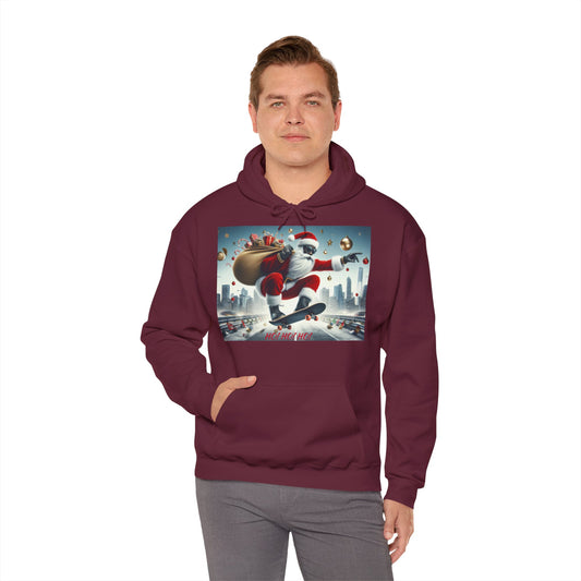 Men's Hooded Sweatshirt - Ho! Ho! Ho! | Santa on Skateboard Design 01